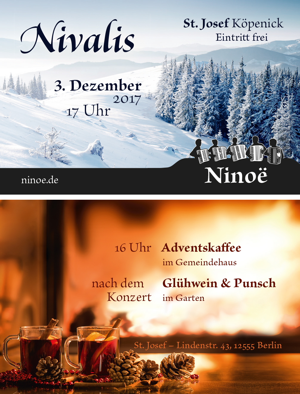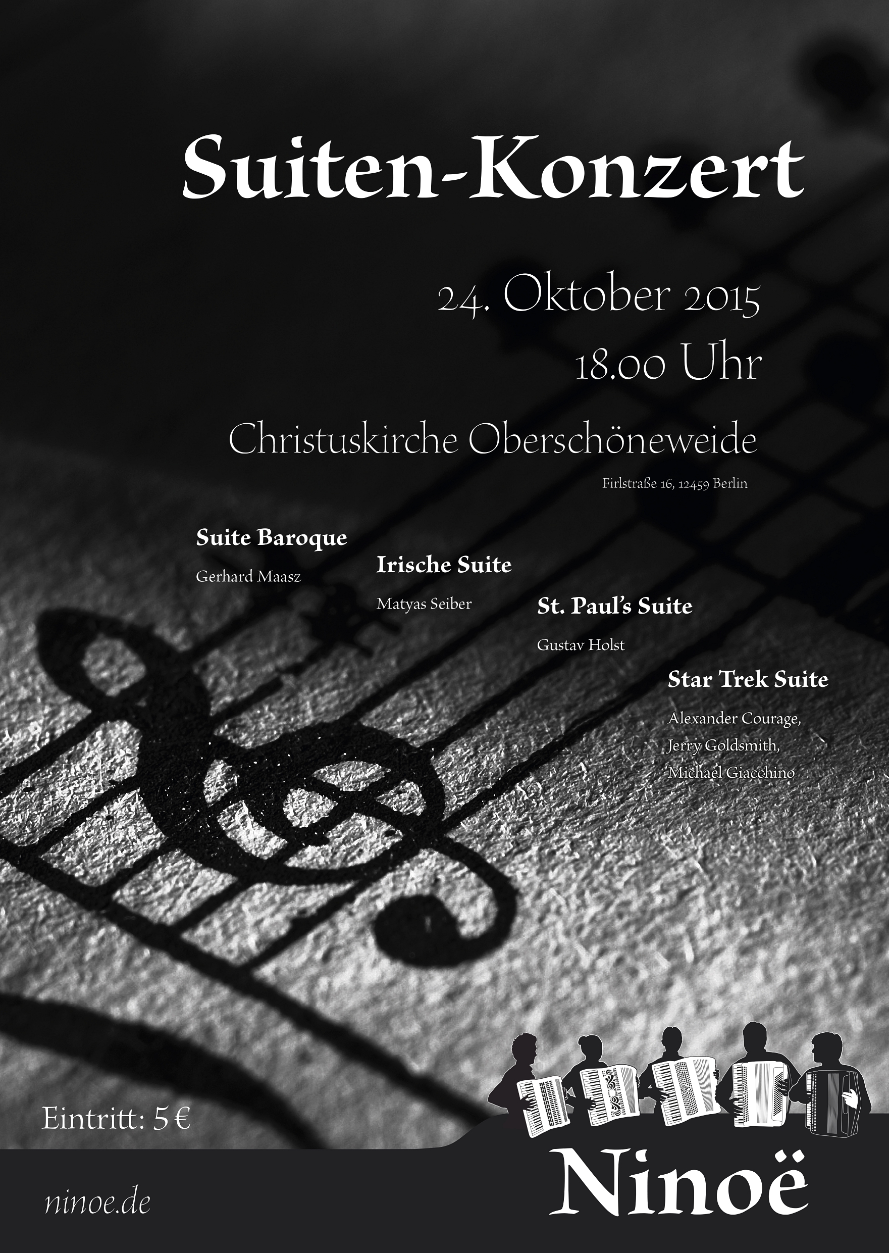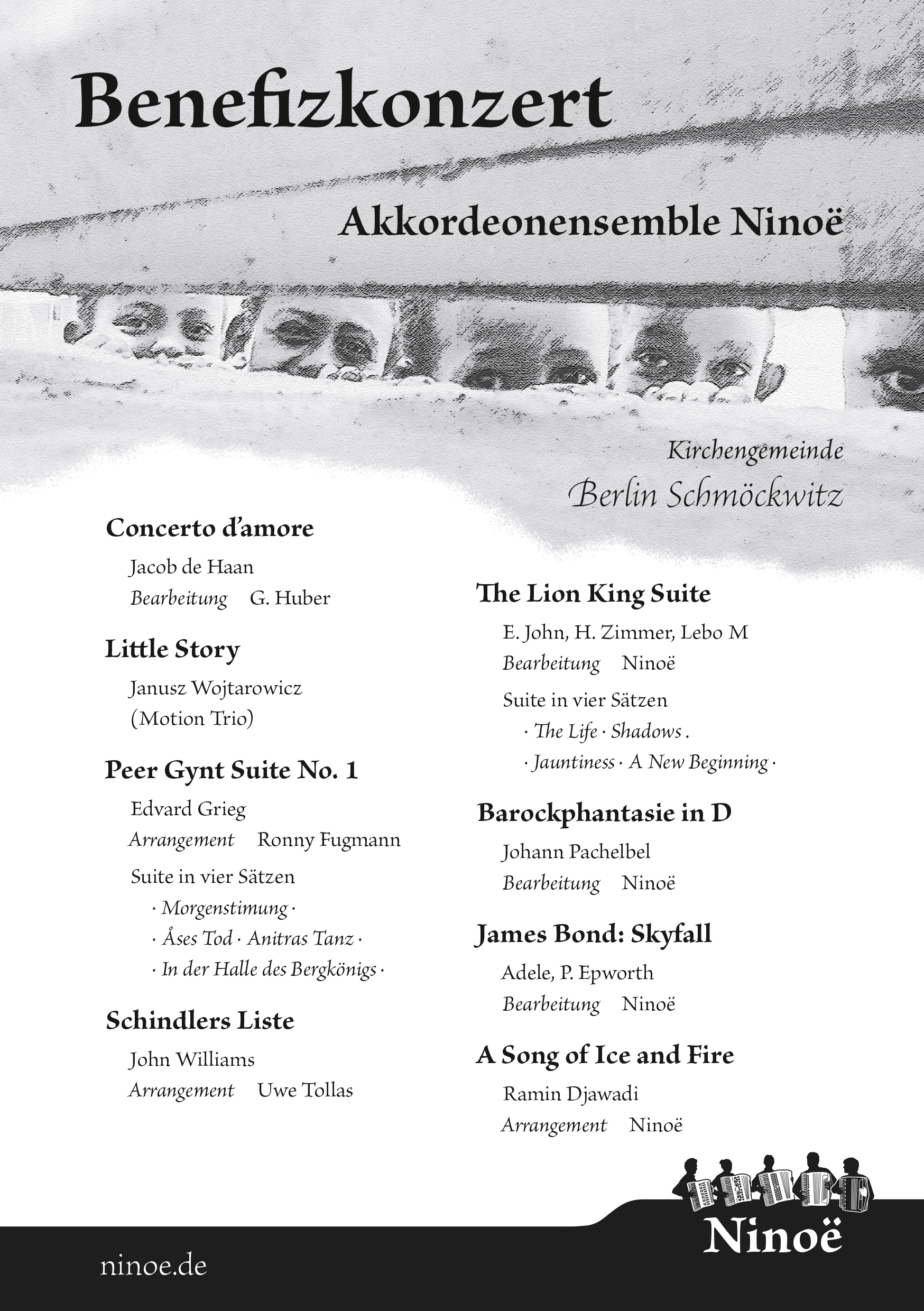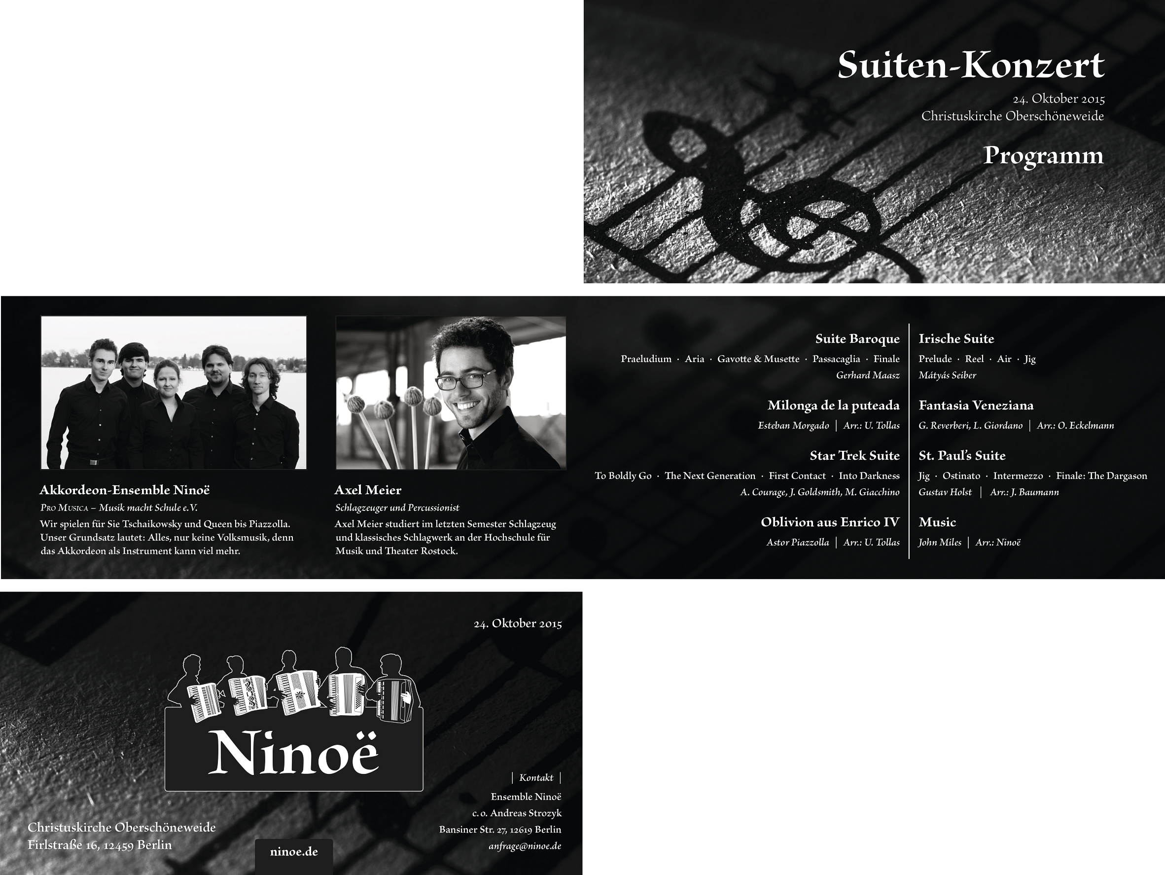 The lead design of the first concert was expected to be simple and based on the website design. I chose a dramatic black and white contrast in a simple but expressive motif.